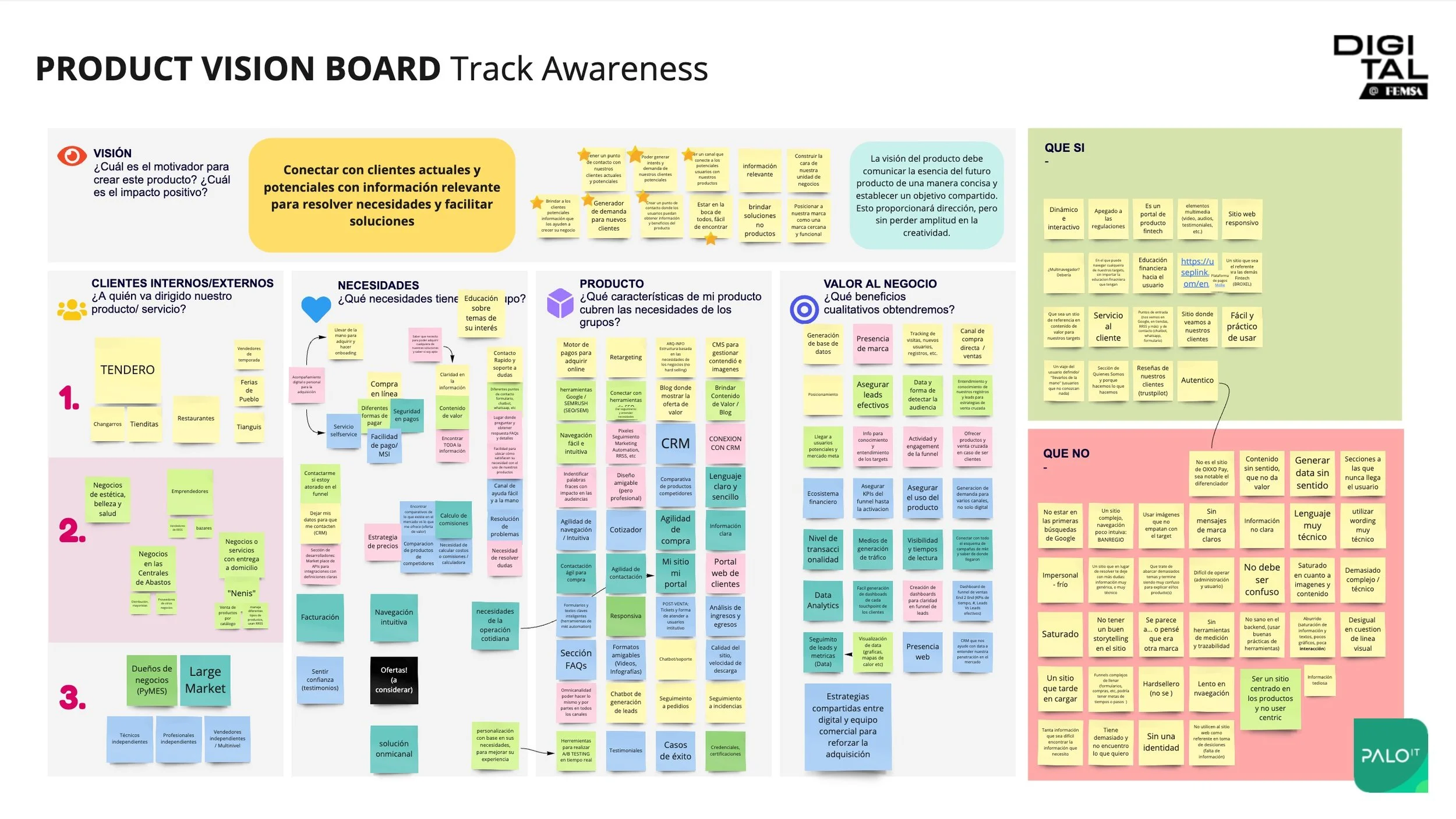 Una vez reunida la información sobre el tipo de usuario que se beneficiaría con nuestras soluciones, se trabajó en sesiones de descubrimiento con los stakeholders la propuesta de valor y la visión de evolución del producto de acuerdo a las necesidades de los usuarios y del negocio.